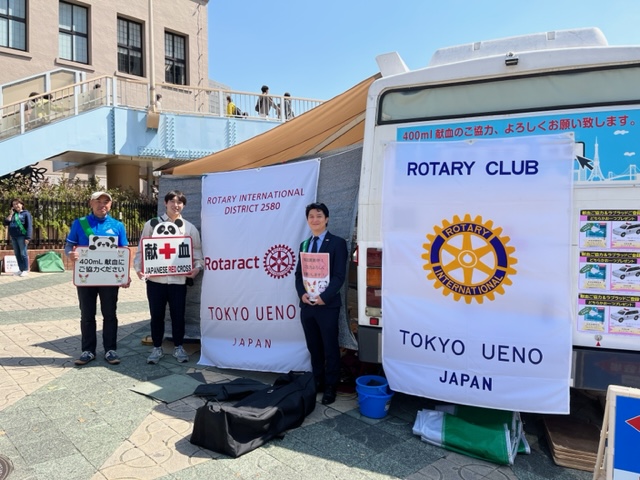 2023年04月1日(土)、東京上野RC・東京上野RAC共同での社会奉仕活動(上野駅前献血活動)を実施しました。現在、血液が大幅に不足しているそうで、今回の献血活動を行うにあたり、公共イメージ向上委員会・社会奉仕委員会・そしてローターアクトのメンバーを中心に念入りに計画。会員本人は勿論のこと、ご家族やご友人、会社の従業員にも積極的に声掛けを行い、奉仕の心を持つ方多くの方たちの暖かいご協力により、意義のある献血活動を実施することができました(献血登録者68名・実施者57名)。東京都赤十字血液センターの方のお話しでは、駅前献血活動としてはとても大きな成果が挙げられたようです。東京上野RCではこれからも「奉仕の精神」を大切にして、活動を行なって参りたいと思います。ご協力いただきました皆様、本当にありがとうございました。